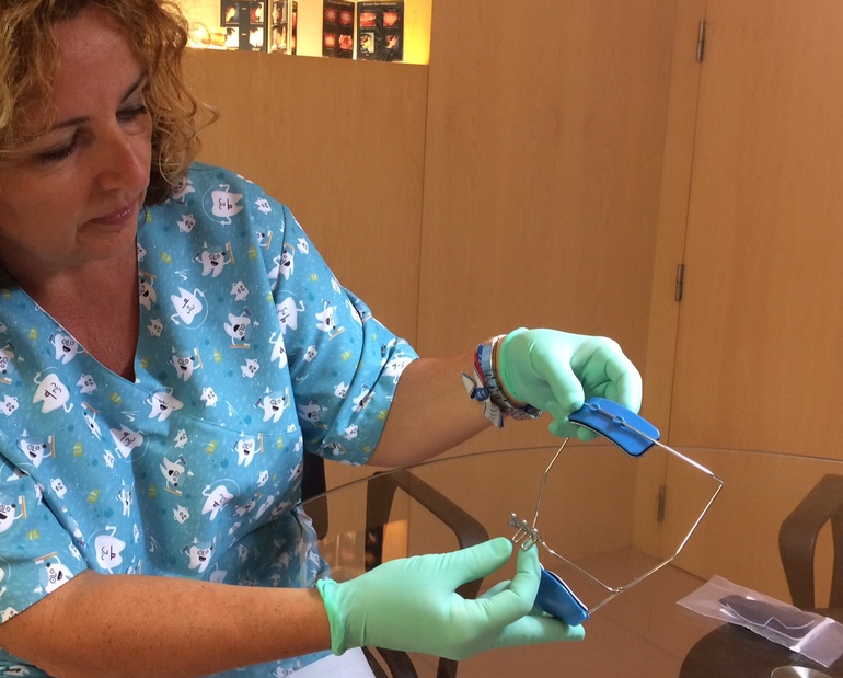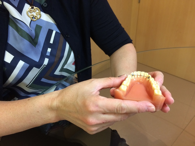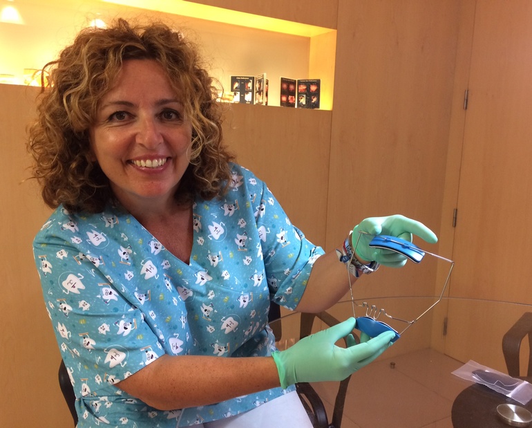 De día no olvides cepillar y limpiar esta barrita metálica que se pone en la cara interna de los dientes inferiores de canino a canino para que no se muevan ni un milímetro hasta que tus muelas de juicio encuentren su lugar o sean extraídas. Y de noche antes de dormir comprueba que está y que ningún diente se mueve por separado, de lo contrario llámanos, alguno se ha despegado.